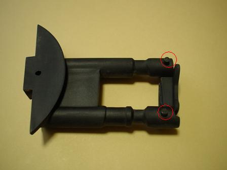 | 実際この赤丸が相手側の穴にはまる様に 出来てはいるのですが、この程度の物では強度は出ません。 時期に折れてしまうでしょう。 なのでこのポッチも切り取ります。 |
